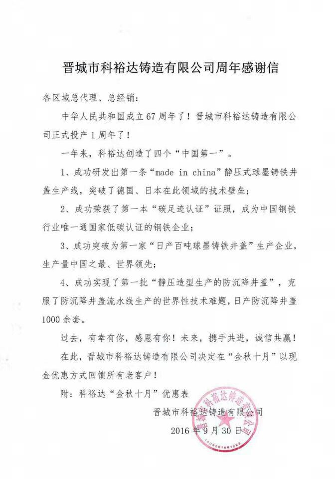 歡迎訪問晉城市科裕達鑄造有限公司,全國標桿型井蓋類鑄造企業,年產逾10萬噸球墨井蓋、鑄鐵井蓋等產品。 聯系我們 ENGLISH