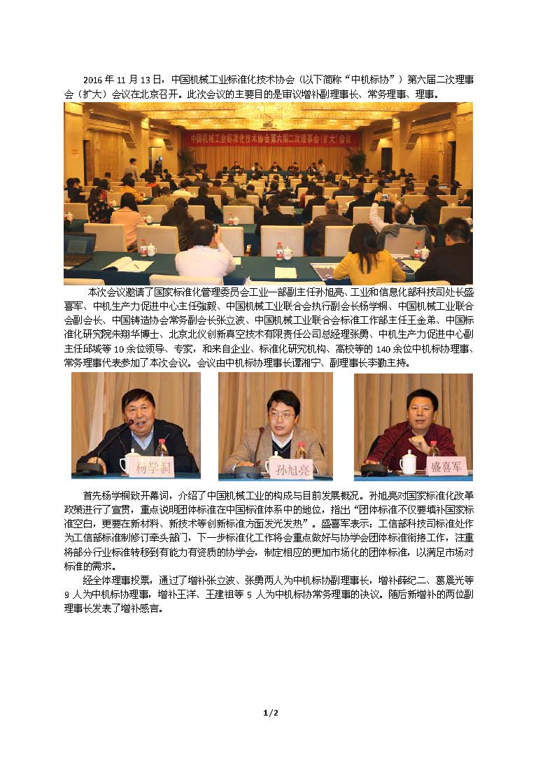 中國機械工業標準化技術協會第六屆二次理事會(擴大)會議召開